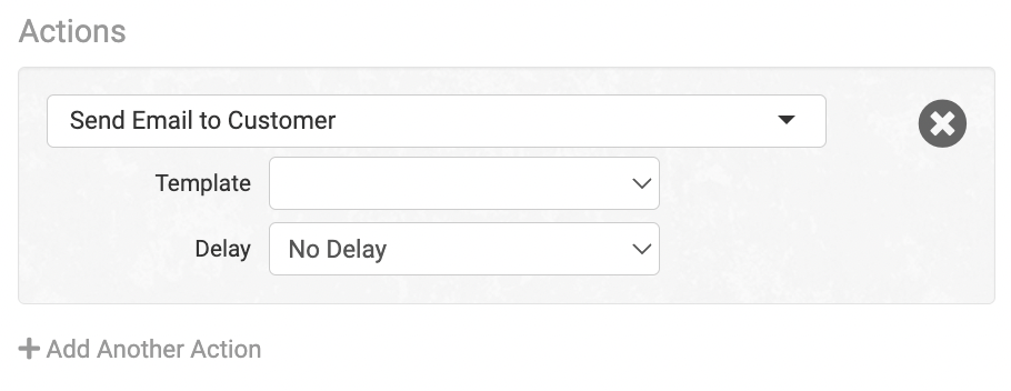 For the Action, choose Send Email to Customer, select your shipment notification template from the list, and set a delay (if any):