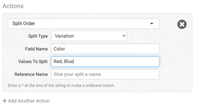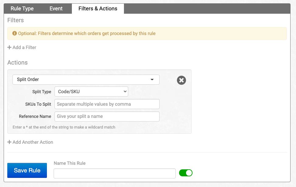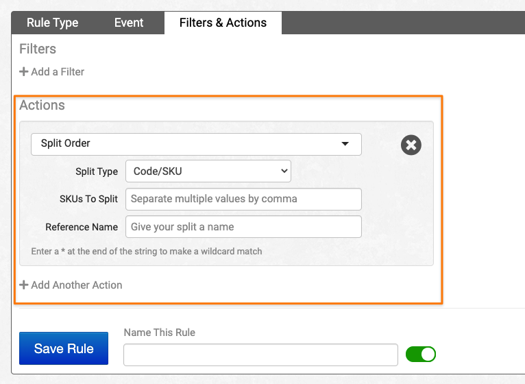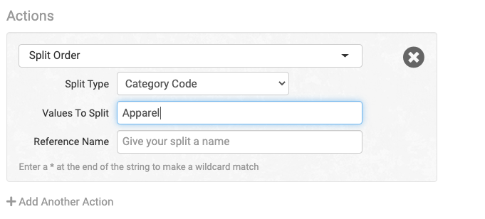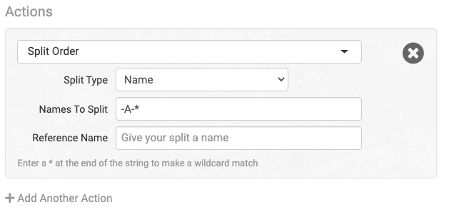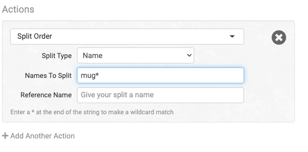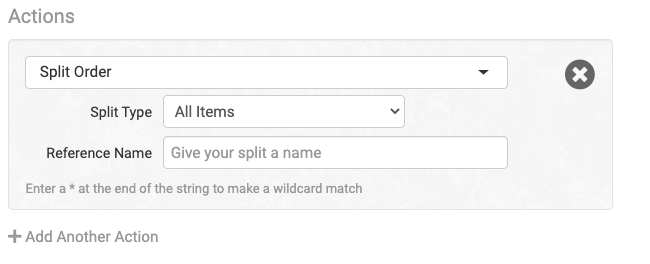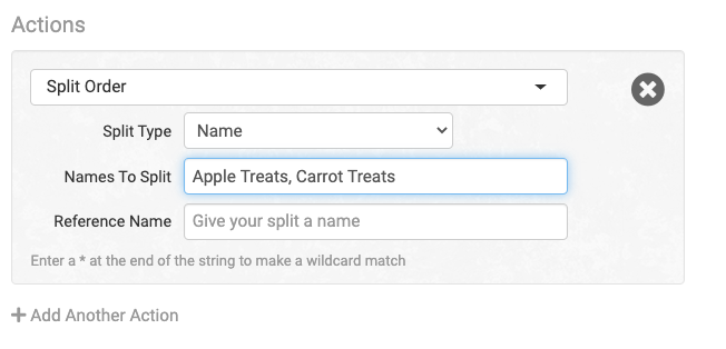 This will split the targeted items into a single order rather than separate individual orders. If you need to separate the treat items into individual orders, set up two separate rules. Also give your split a Reference Name.