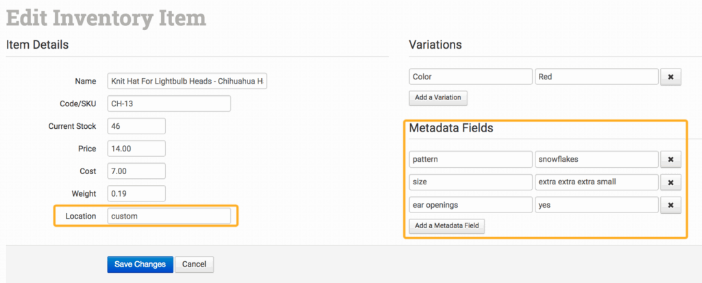 If the data you need doesn’t come in from your shopping cart, add it directly to your saved inventory items here in Order Desk: