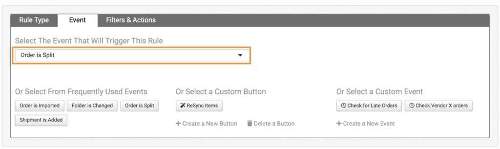Select the event that you want to split orders on. This is typically going to be Order is Imported, but any event can be used.