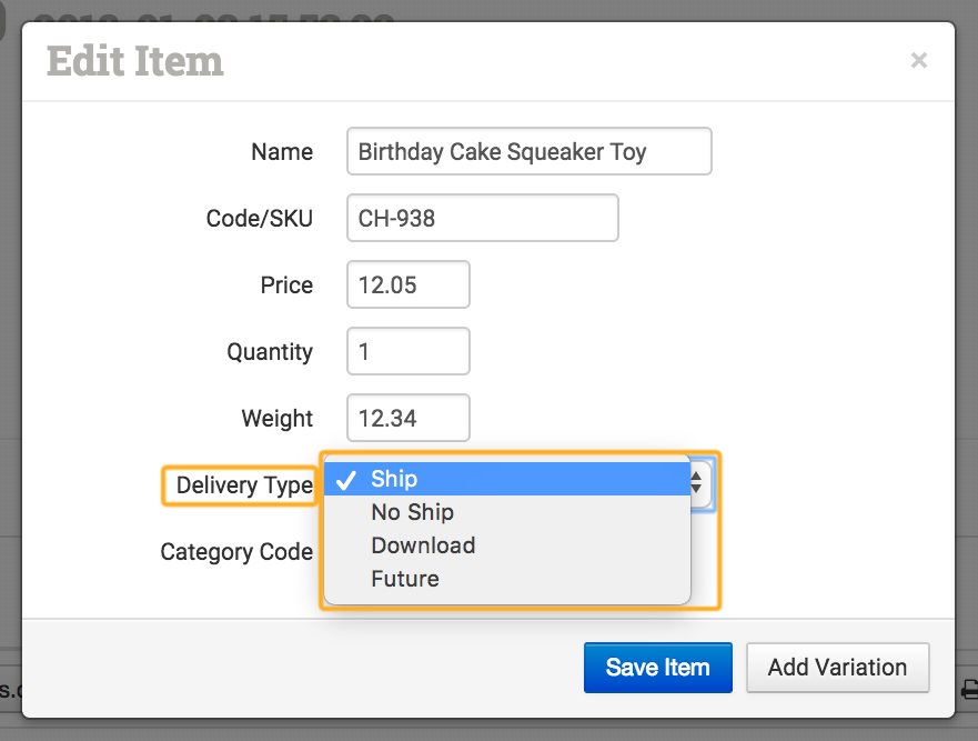 - CATEGORY CODE: Category Code is a unique field used for the Foxy integration allowing you to categorize your items. If you are using Foxy, you can use it to split your items into separate orders. Shopify vendors will also be placed in this field.