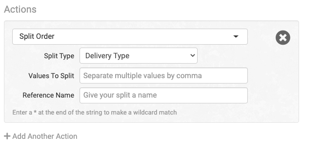 To set up your rule, under the Split Type menu choose Delivery Type, then add the type of delivery to the Values to Split line, and give this split a Reference Name.
