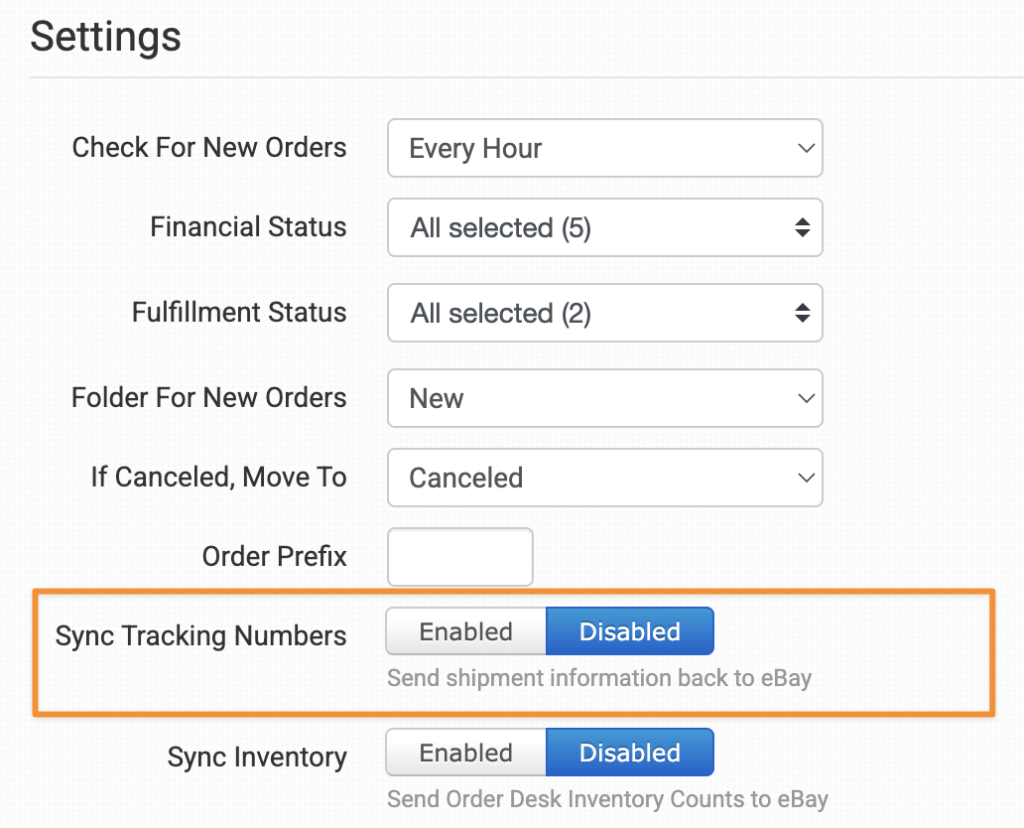 In many integrations, Order Desk can send shipment and tracking information back to your cart automatically, marking the order as shipped as soon as tracking information comes in. To enable this, turn on the Sync Tracking Numbers setting in your cart integration settings.