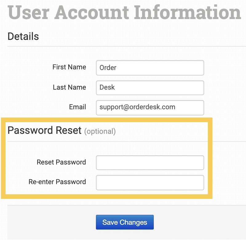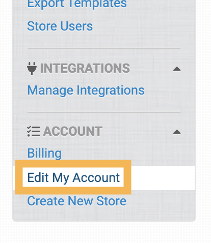 If you’re logged in to your Order Desk store, you’ll want to refer to the sidebar on the left side of the screen and click Edit My Account.