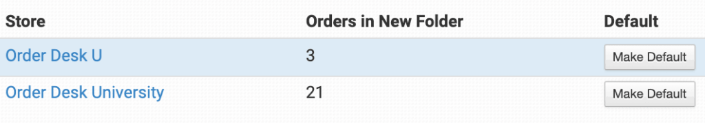 All stores associated with your email address will be visible here, displaying a list of each store, how many new orders each one currently has, and an option to select which store you want to open by default when you access your dashboard.