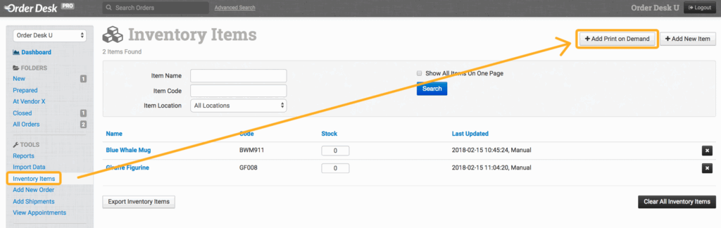 Add Inventory to Order Desk