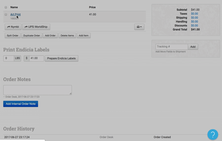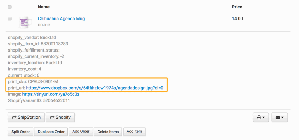 Let’s say you have an item, Art Print, with the SKU 1025, and all the print details are already saved in Order Desk: