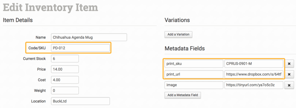 2. You must have your Inventory Items stored in Order Desk with the print details added to either the metadata or as variations.