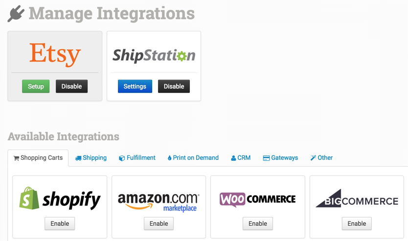 Order Desk offers integrations with many other apps, websites and services. An integration isn’t necessary for using Order Desk, but it does make setup and fulfillment quite a bit easier. If you use any of our integrations, enable these first and adjust the settings of each one to your preferences.IMPORTANT