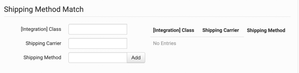 If you’re using a supported middleware integration, you’ll find the Shipping Method Match section in the integration settings page.