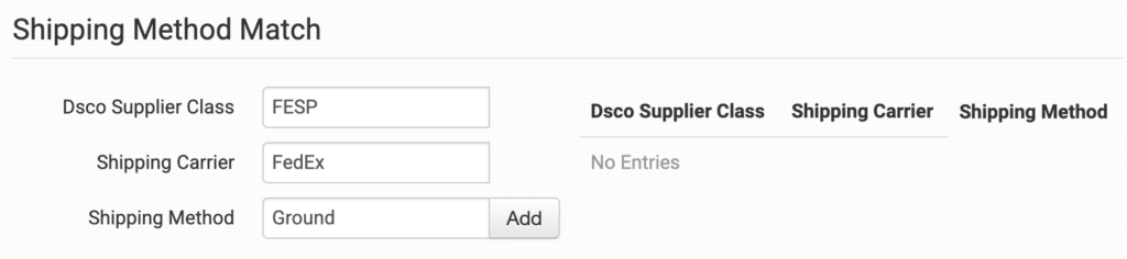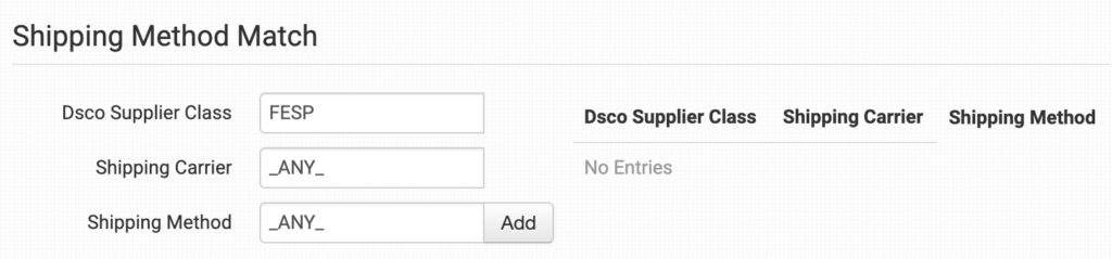 Shipping Method Match Settings