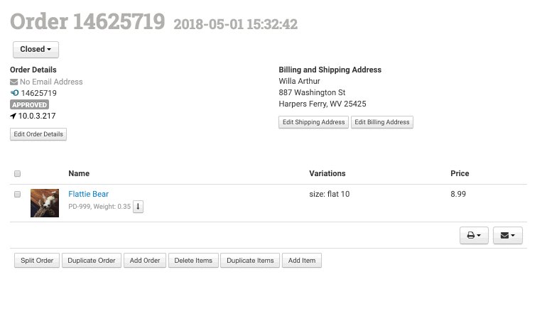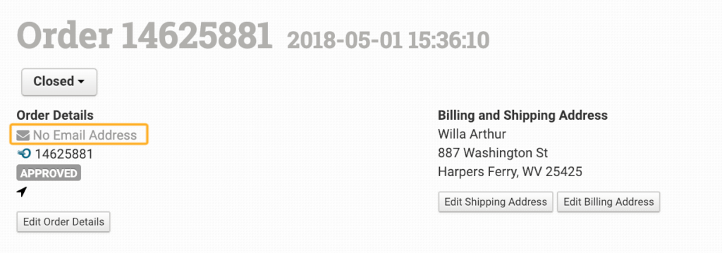 When any details are changed by clicking the Edit Order Details button: