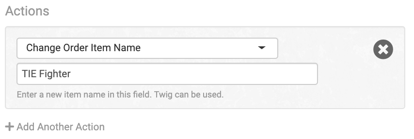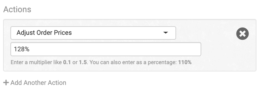 If you select Order Item Rule type, these are the actions that will be available in the rule. They will only affect any items in the order that the filters apply to. If no filters are added, they will affect every item in an order.