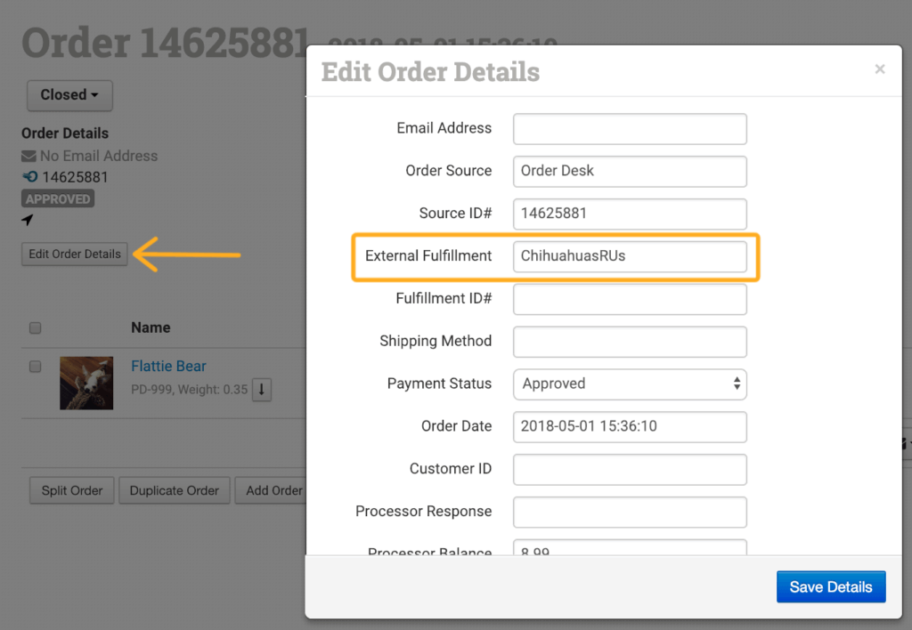 Set the name of the company the order is being sent to for fulfillment. This information is found from Edit Order Details in the External Fulfillment field: