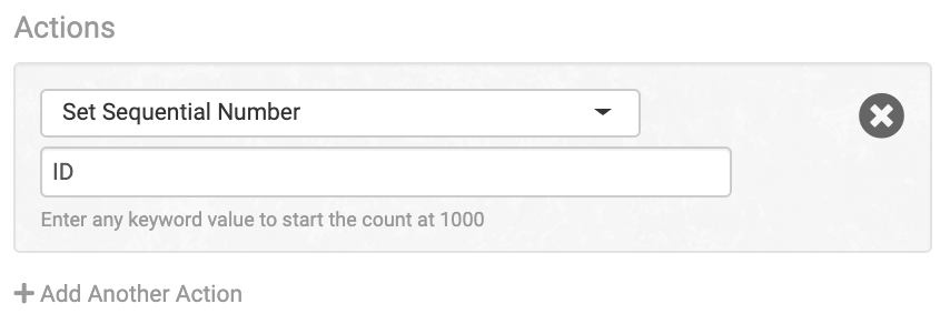 Adds a sequential number on every order when the rule runs. This will be added as checkout data and needs to be named in the rule, such as ID: