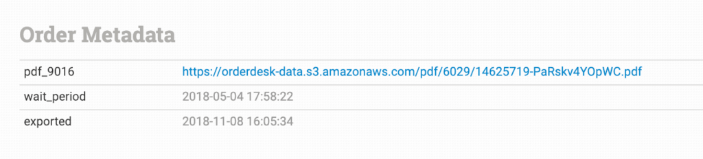 Please note that this is not the same as item metadata. Order metadata is found at the bottom of the order details page: