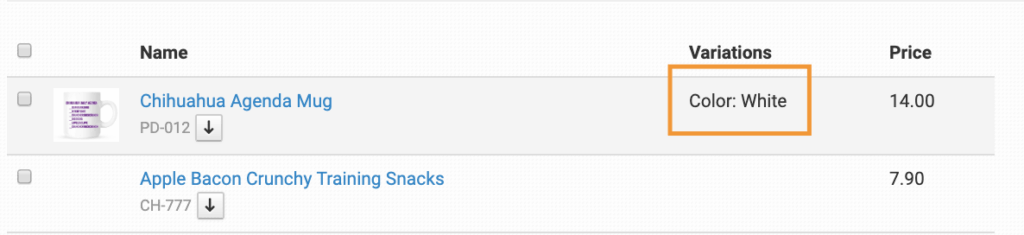 For example, if you have a variation called “Color” on your items:
