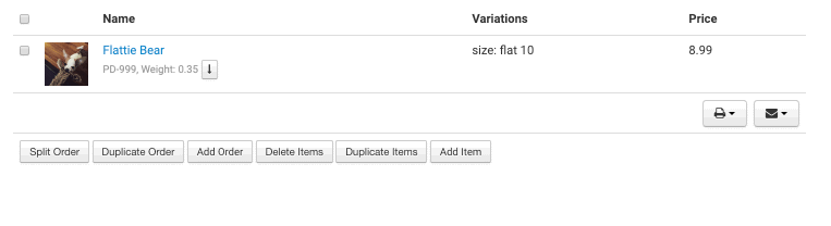 Add a variation to the item. Variations function exactly the same as item metadata, however they are easier to access and edit directly on the items in the order: